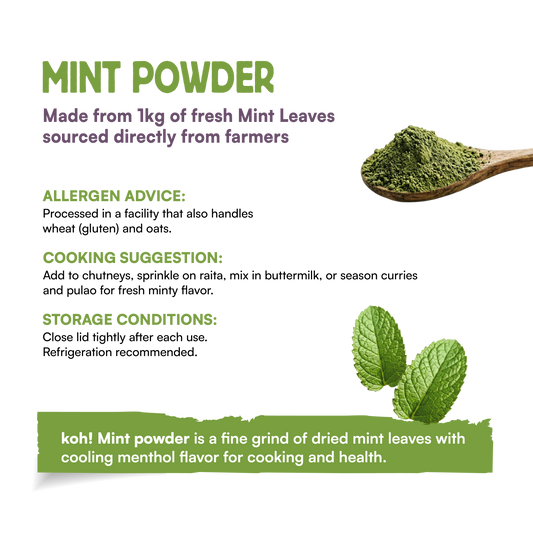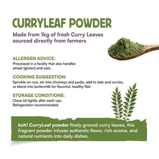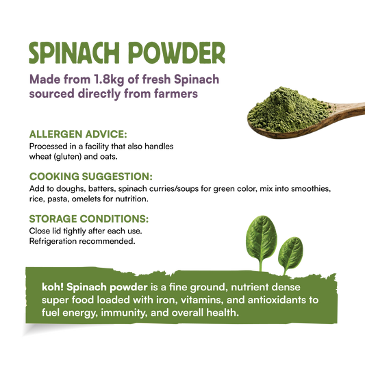 Ingredients: 1 cup makhana (fox nuts) 2 tablespoons KOH Spinach Powder Instructions: Dry roast the makhana in a pan over medium heat until crispy. Once roasted, sprinkle KOH Spinach Powder...