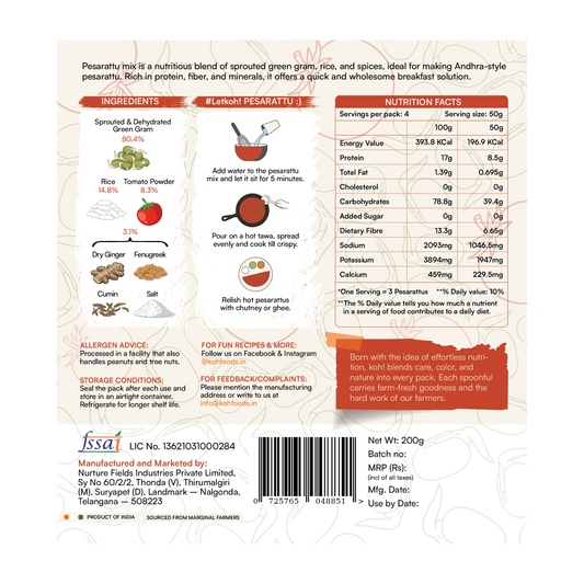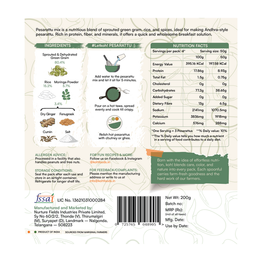 Sprouted Moong Dal Pesarattu Mix + Goodness of Moringa