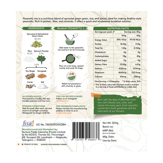Sprouted Moong Dal Pesarattu Mix + Goodness of Spinach