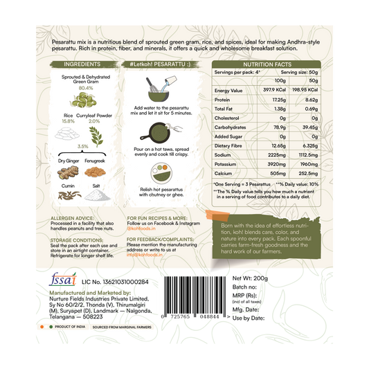 Sprouted Moong Dal Pesarattu Mix + Goodness of Curry Leaf