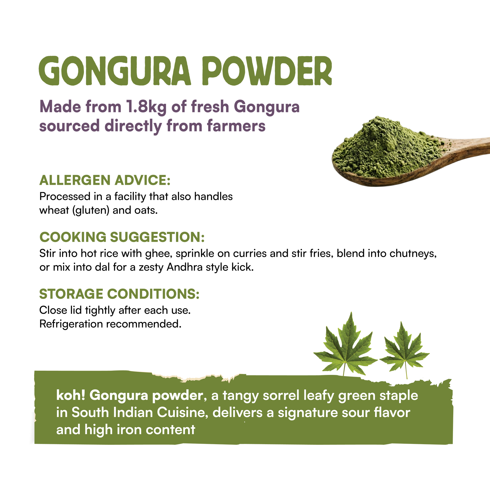 Add two table spoons of gongura powder instead of 1 cup of fresh gongura leaves to add tangy taste to your dishes.
