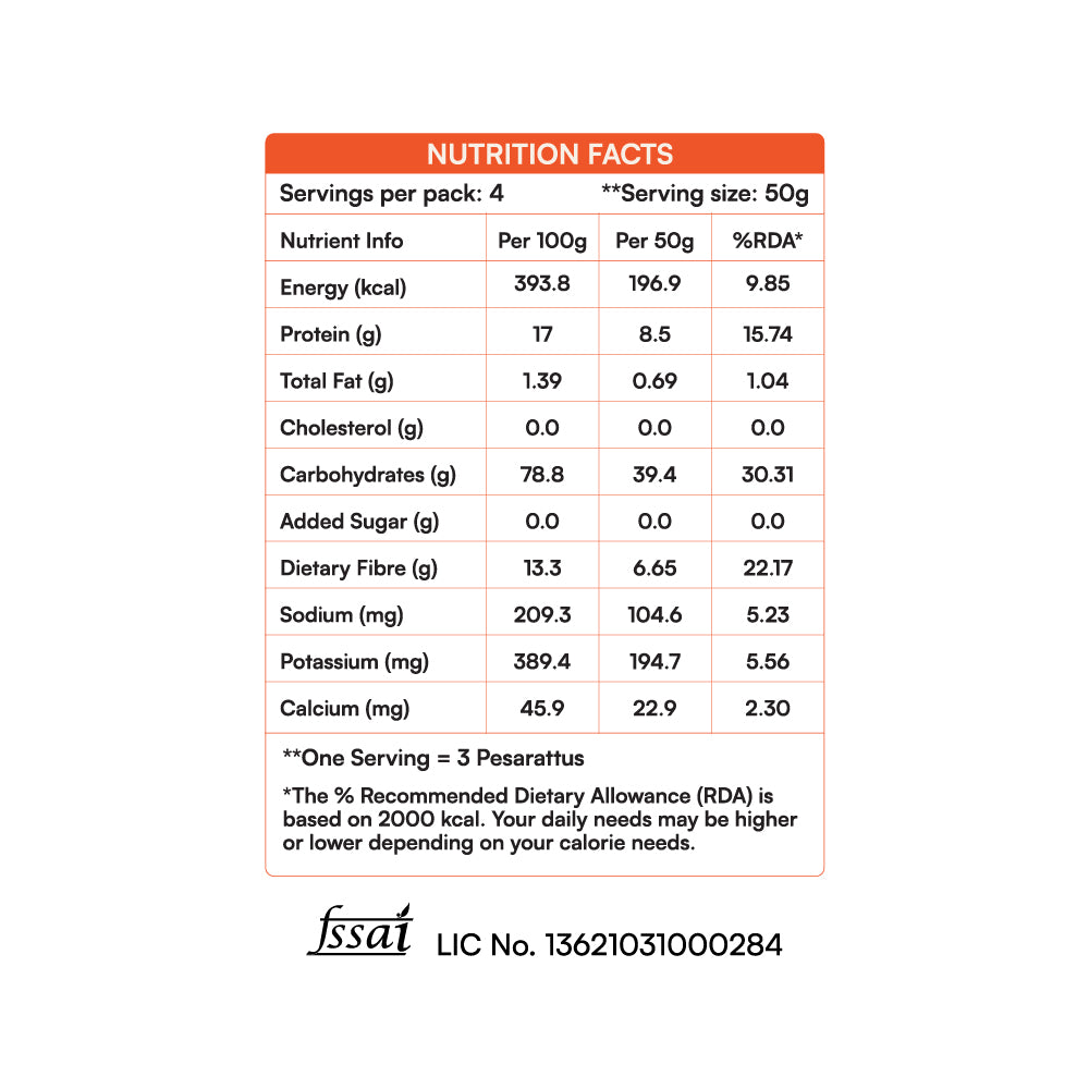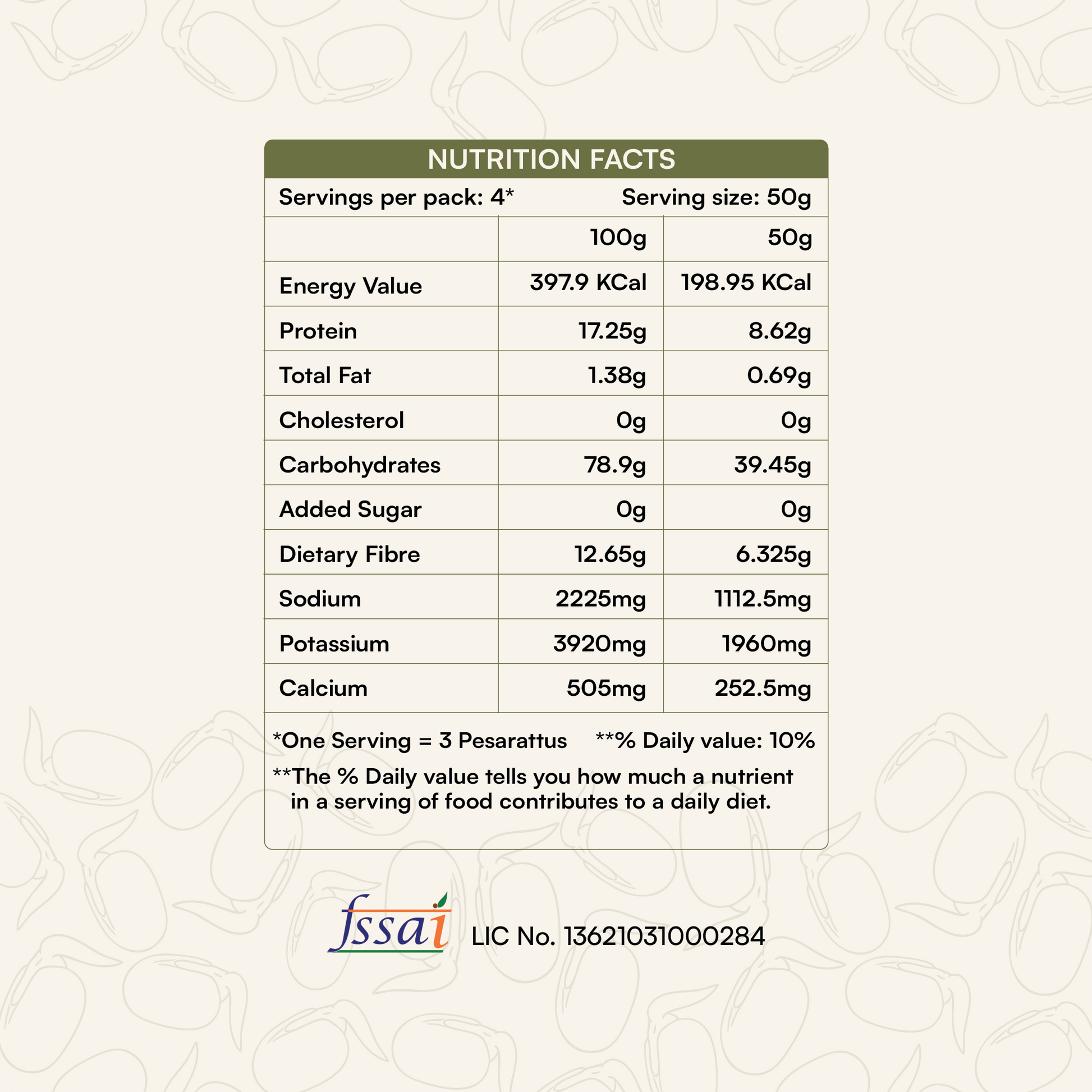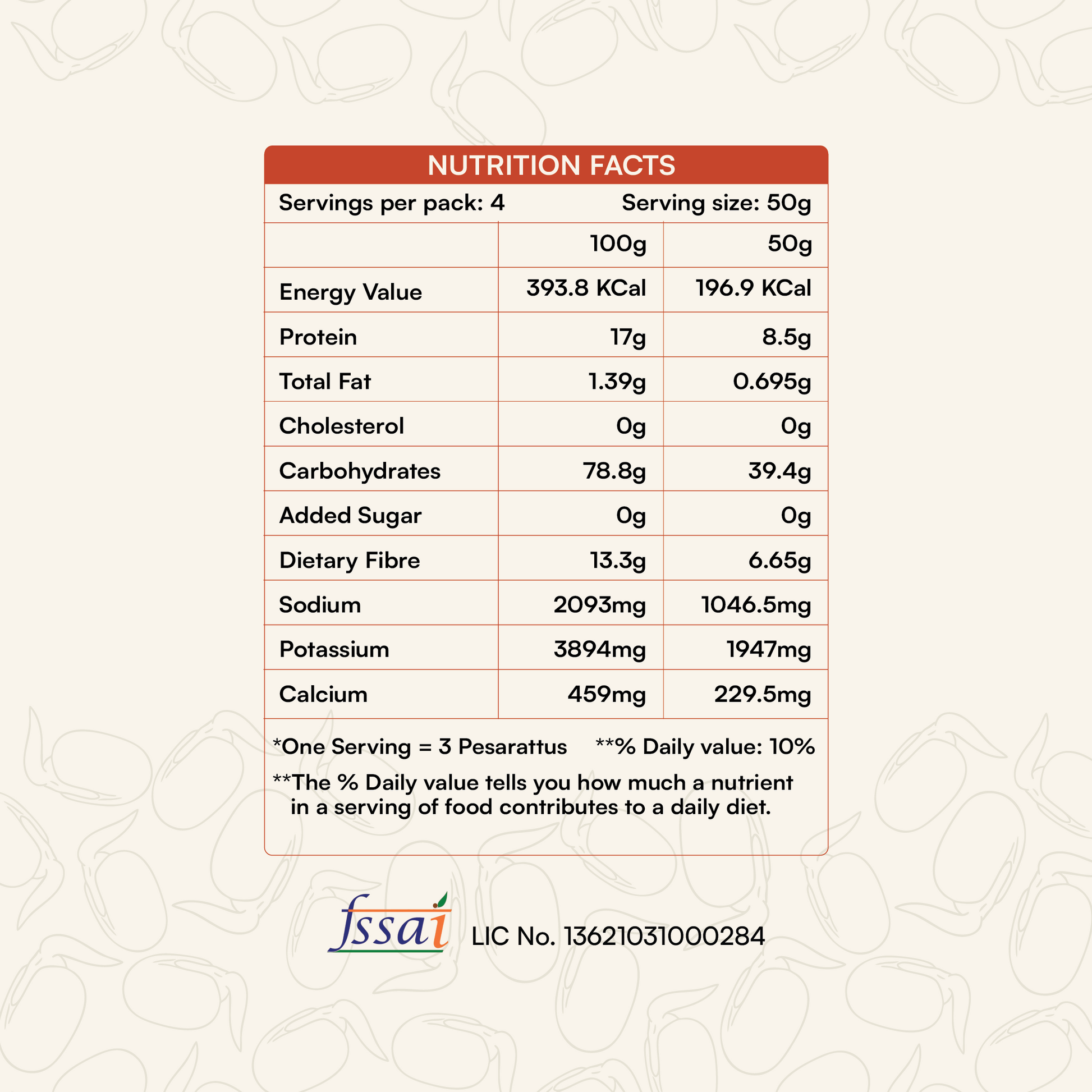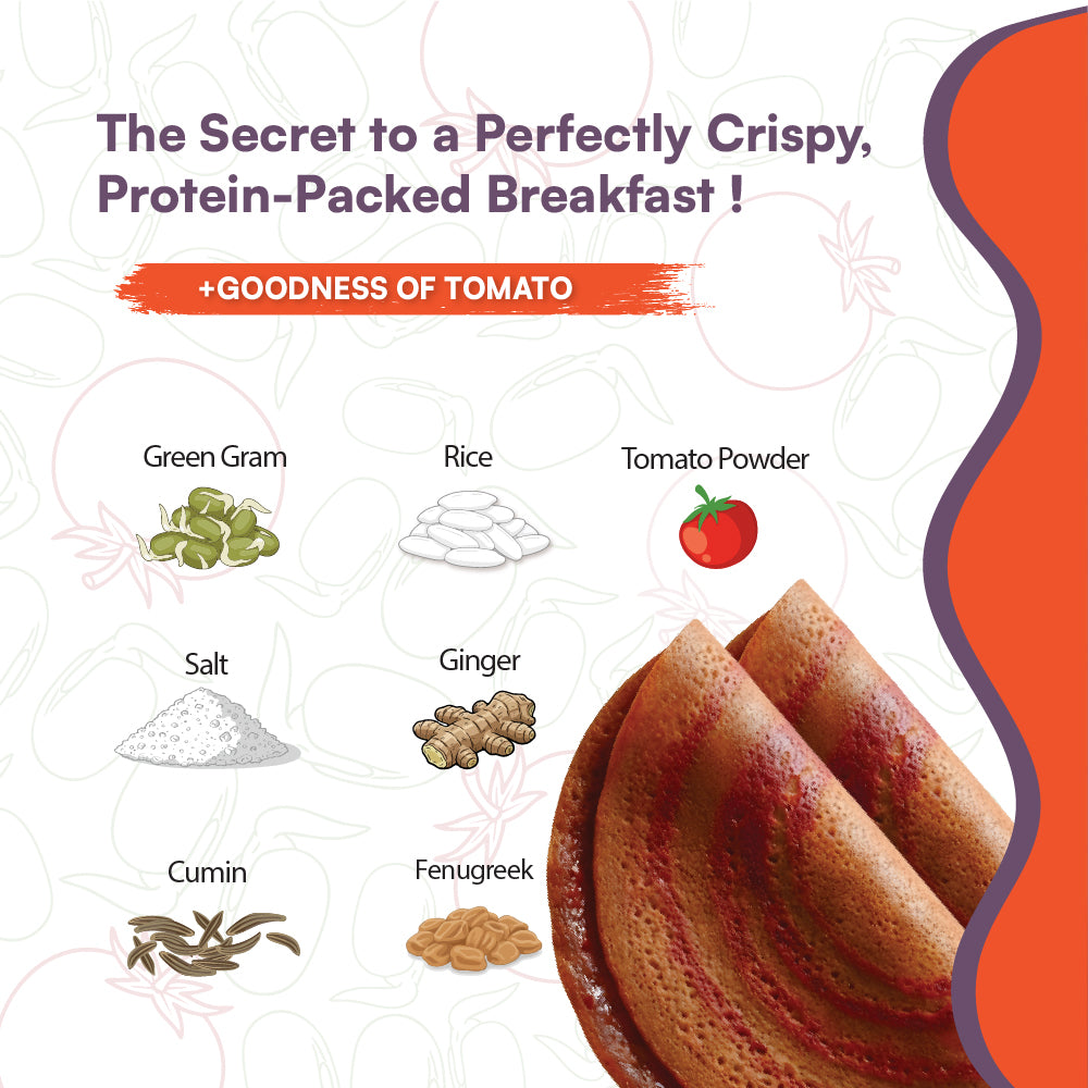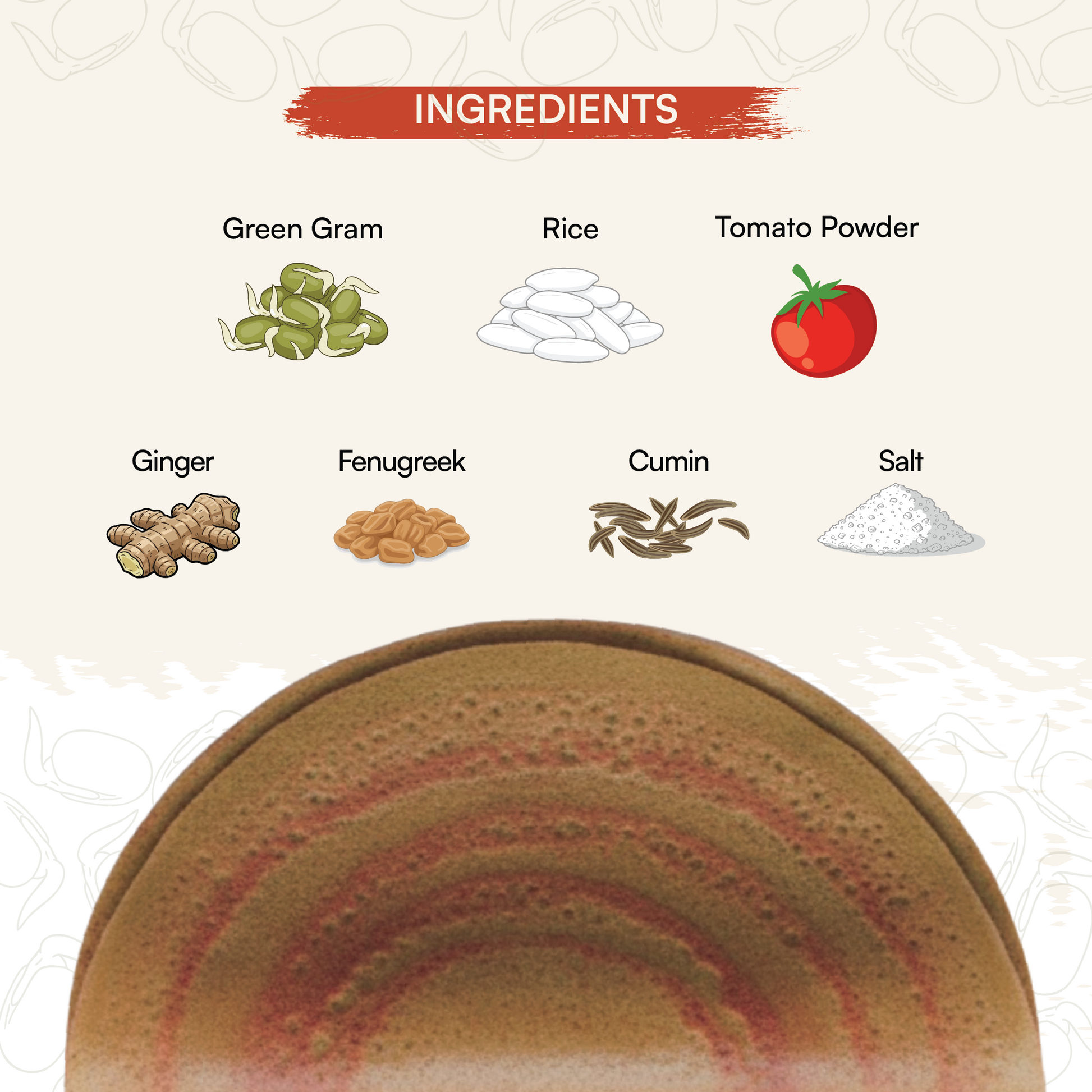 Made with sprouted green gram, rice, ginger, salt, and fenugreek, this mix is a powerhouse of plant-based protein, fibre, and essential minerals. Whether you're fueling a busy day or seeking a light and clean meal, this chilla mix is your go-to option.
