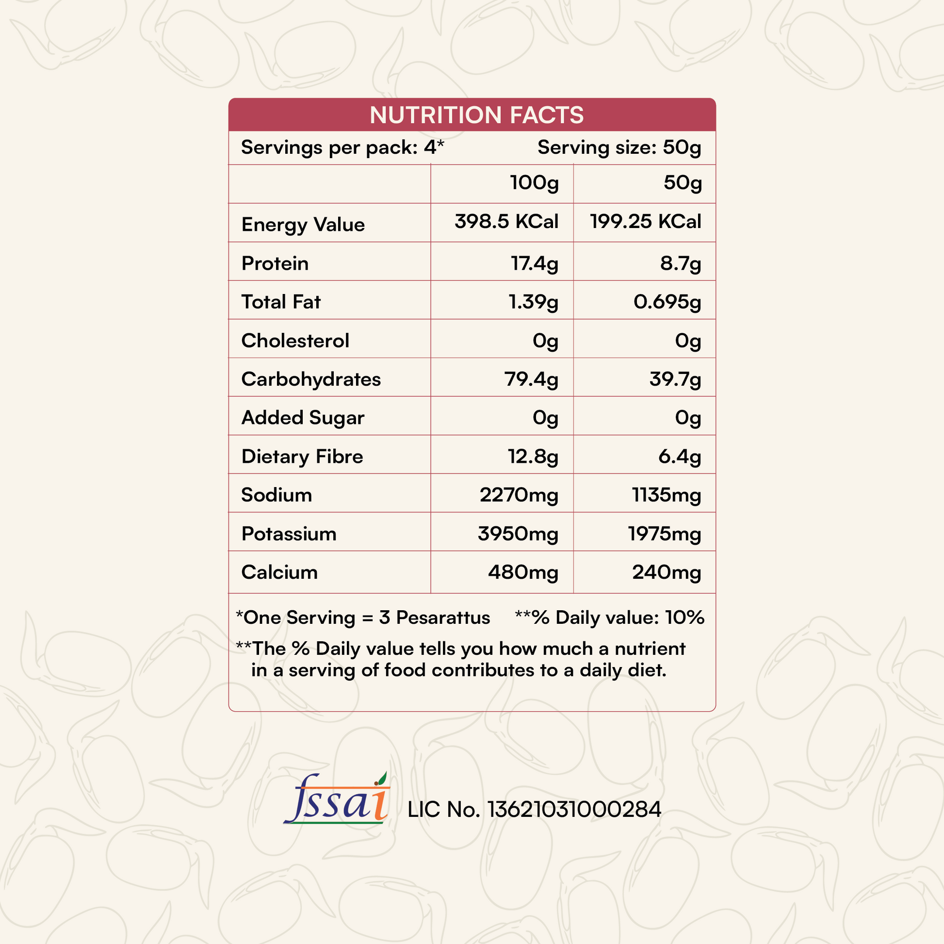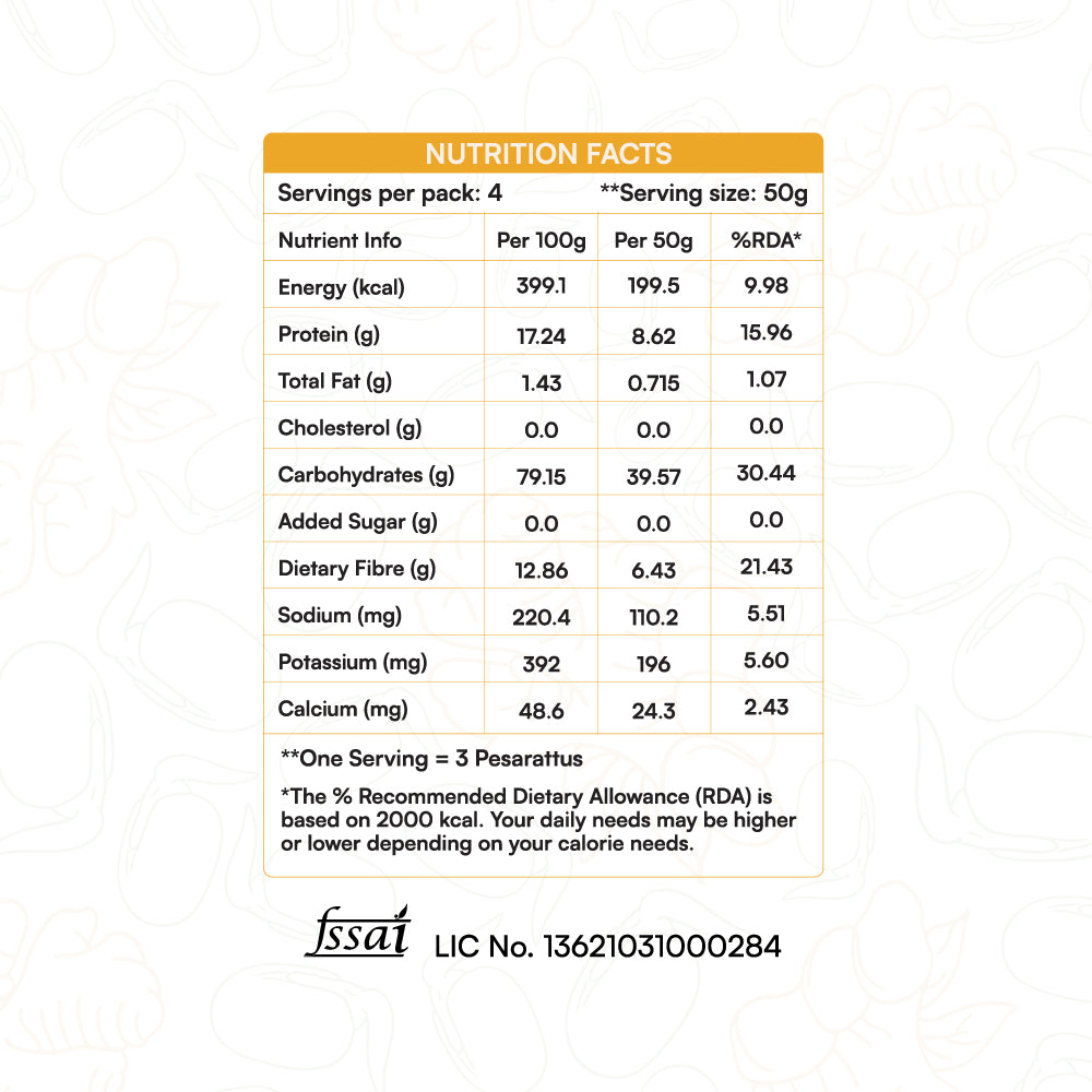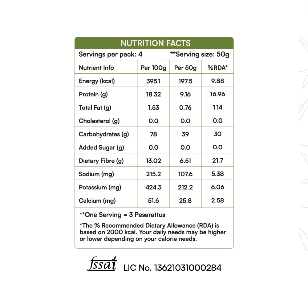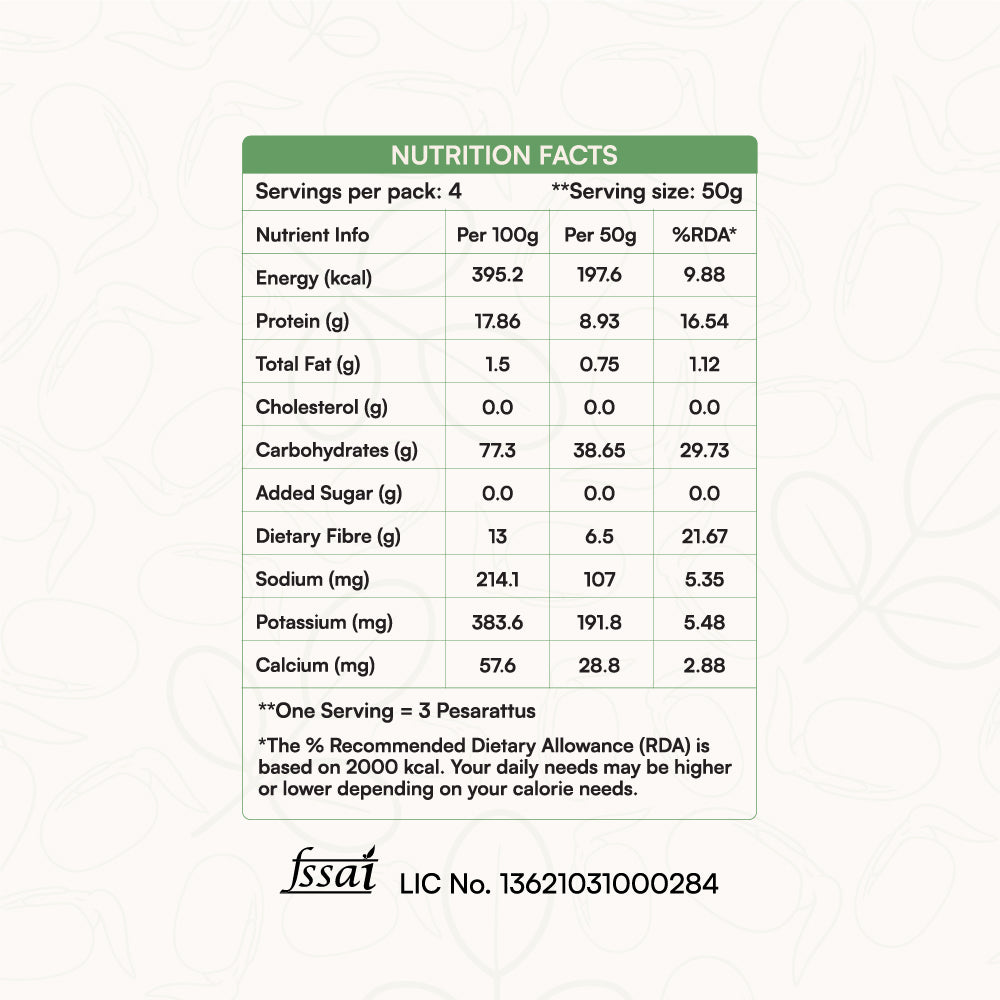 Start your mornings the wholesome way with our Pesarattu Mix, a nourishing blend of sprouted green gram, rice, and aromatic spices. Inspired by the traditional Andhra-style Pesarattu, this mix delivers all the flavour and nutrition of the classic dish with none of the prep time.