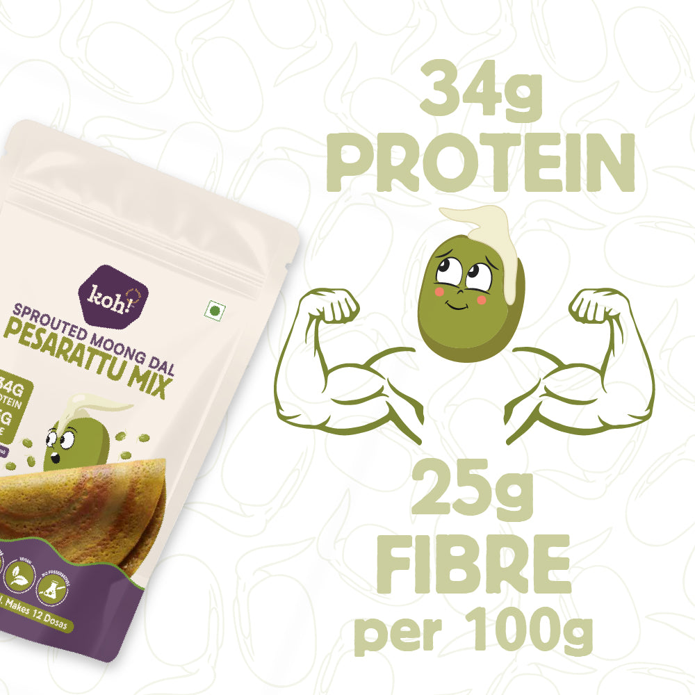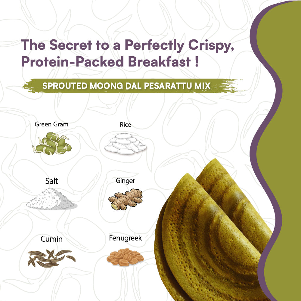 Made with sprouted green gram, rice, ginger, salt, and fenugreek, this mix is a powerhouse of plant-based protein, fibre, and essential minerals. Whether you're fueling a busy day or seeking a light and clean meal, this chilla mix is your go-to option.
