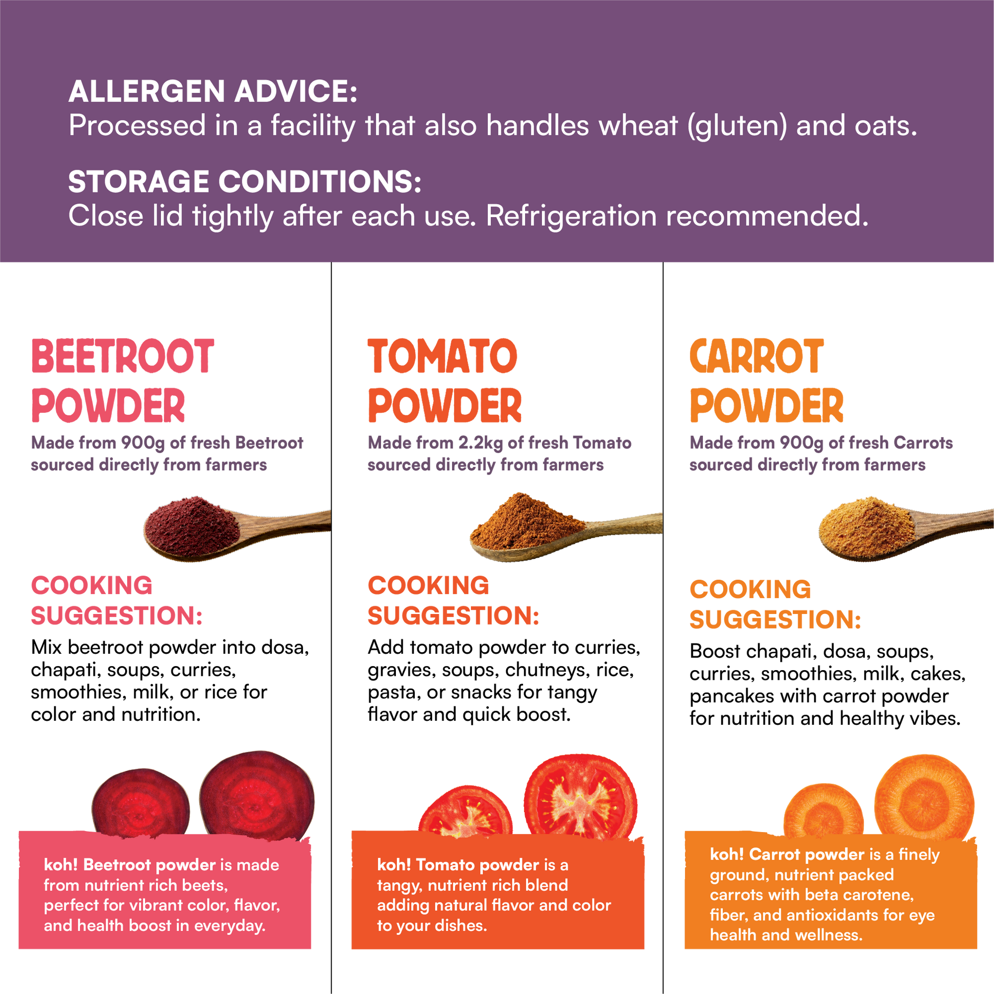 Beetroot Powder: Packed with antioxidants, Beetroot Powder adds vibrant color and a sweet earthy flavor to your dishes, while promoting heart health and boosting endurance.