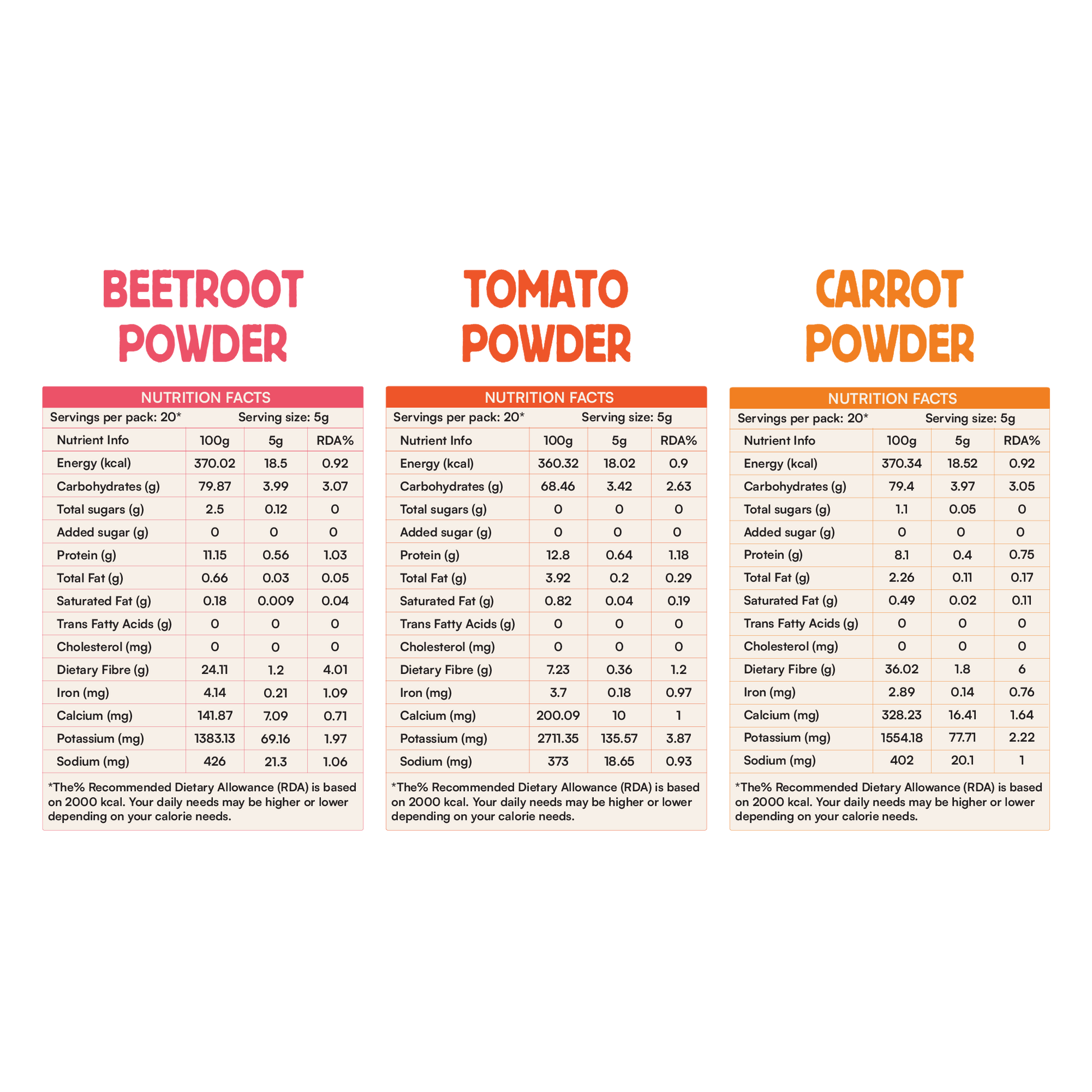 Carrot Powder: Bursting with beta-carotene and vitamin A, Carrot Powder enhances the flavor and nutritional content of your recipes, contributing to healthy vision and skin.