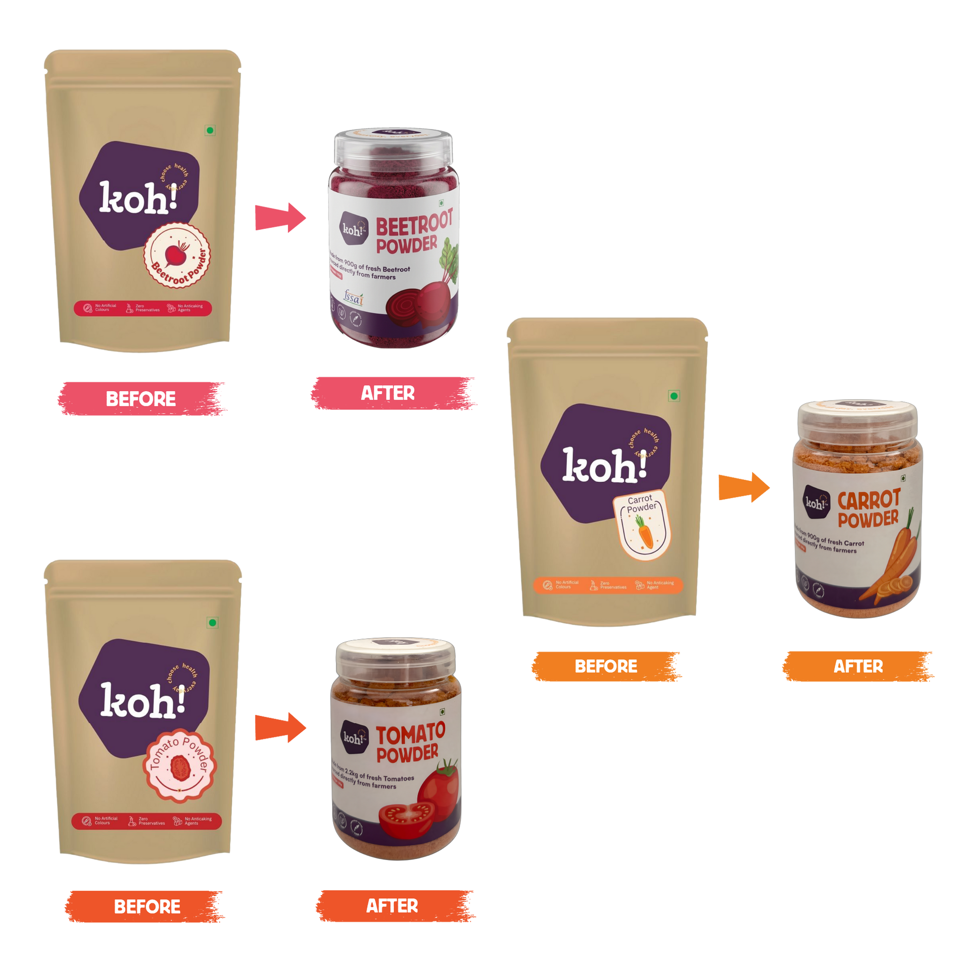 We produce all koh! products at our own factory located in rural Telangana. This allows us to maintain the highest standards of purity and quality. Our products are completely free of preservatives, additives, and artificial colors.