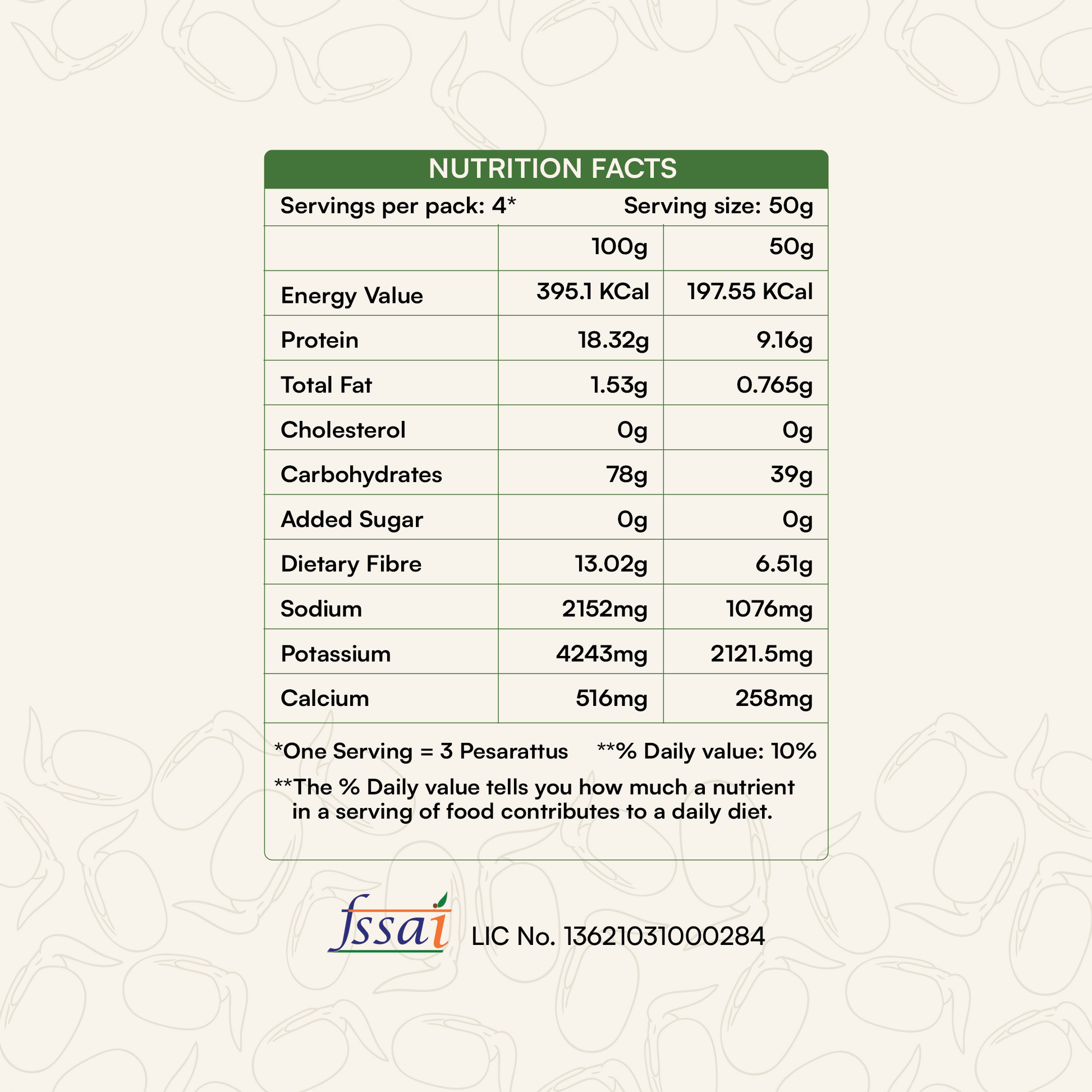 Start your mornings the wholesome way with our Pesarattu Mix, a nourishing blend of sprouted green gram, rice, and aromatic spices. Inspired by the traditional Andhra-style Pesarattu, this mix delivers all the flavour and nutrition of the classic dish with none of the prep time.